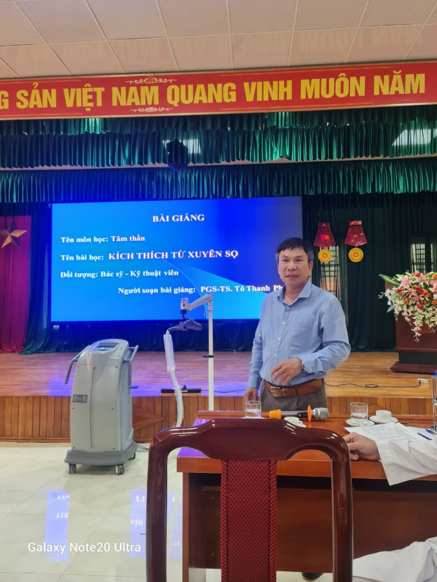 Bắt nhịp xu thế của thời đại, Ngày 20/3/2023 Bệnh viện Phục hồi chức năng tỉnh Sơn La đã mời PGS.TS Tô Thanh Phương cùng ekip từ Bệnh viện Tâm thần Trung Ương I lên giảng dạy, tập huấn về kỹ thuật “Kích thích từ xuyên sọ”.
